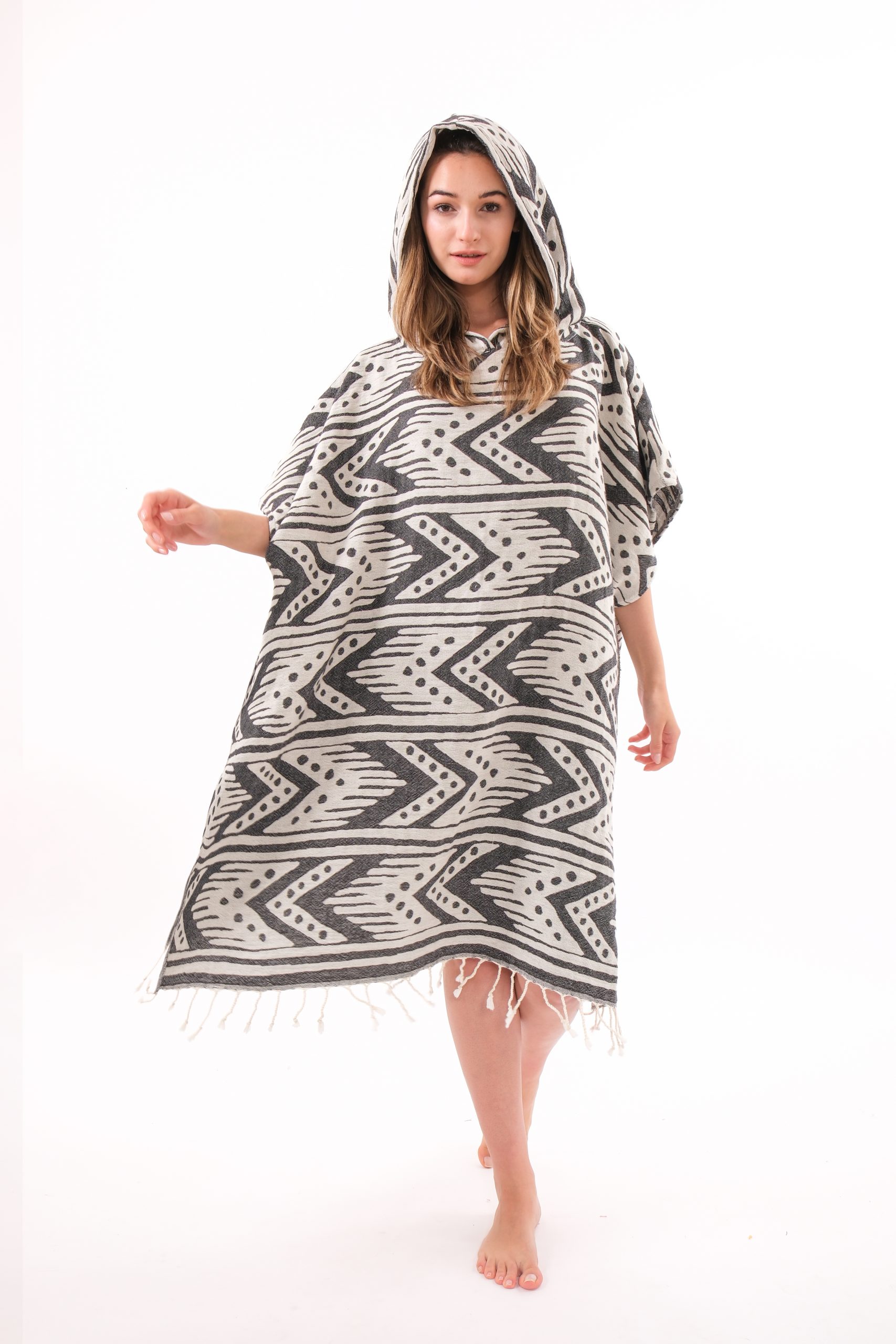 Home Plaj Elbisesi Maia Unisex Şapkalı Peştemal Bornoz %100 Pamuk Panço Uzun Plaj Elbisesi Havlu