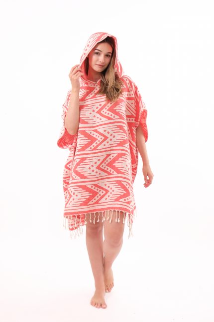 Maia Unisex Şapkalı Peştemal Bornoz %100 Pamuk Panço Uzun Plaj Elbisesi Havlu