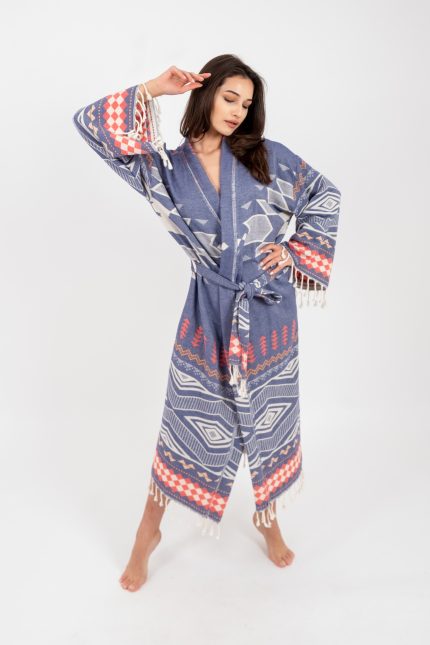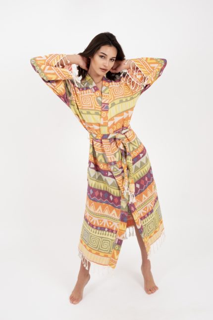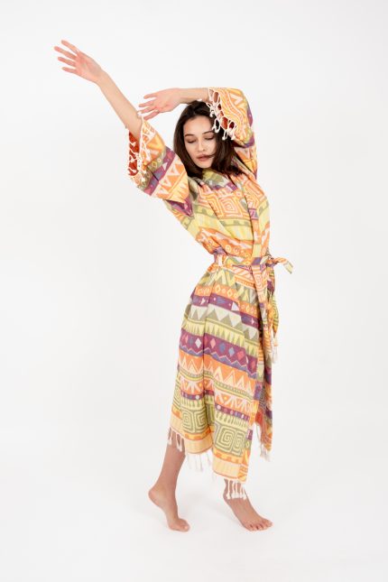 Müslin Peştemal Bornoz Batik Kimono Kaftan Elbise %100 Pamuk Plaj Elbisesi
