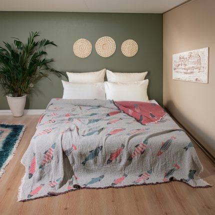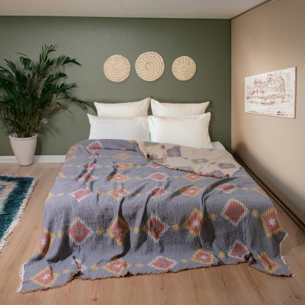 4 Kat Müslin 100% Pamuklu Çift Kişilik Pike – Yatak Örtüsü