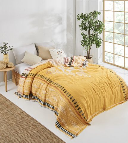 4 Kat Müslin 100% Pamuklu Çift Kişilik Pike – Yatak Örtüsü